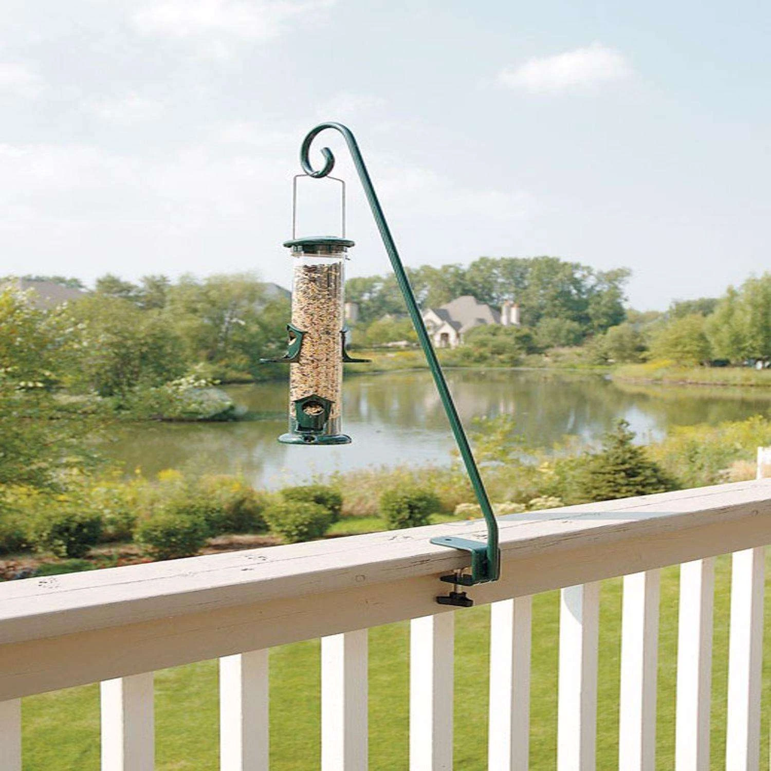 The WoodLink Audubon deck mount bracket uses an adjustable clamp to latch securely onto your deck rail, providing a stable place to hang various objects. The hook can be used to hold a bird feeder, a planter, a lantern or other decoration. The durable construction and polyester power coating make this hanging planter or bird feeder bracket a reliable and sturdy fixture. Easily clamps to your deck to hang bird feeders, flower baskets, and more Features durable construction and dark green powder coating to ensure lasting quality This bracket easily clamps to your deck to hang bird feeders, flower baskets and more. Durable construction and polyester powder coating ensures lasting quality. Fits deck rails 3/4 to 1 1/2. Holds up to 15 lbs.