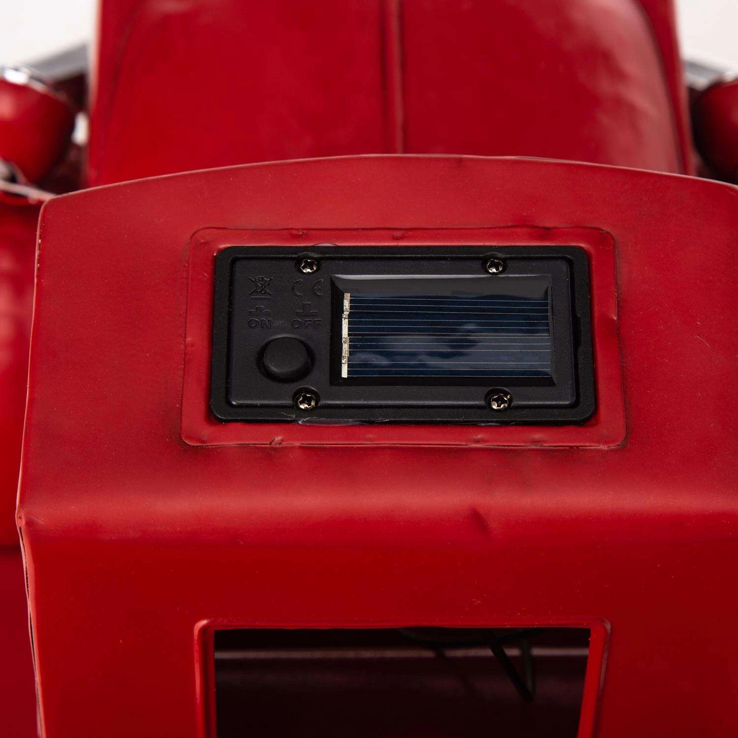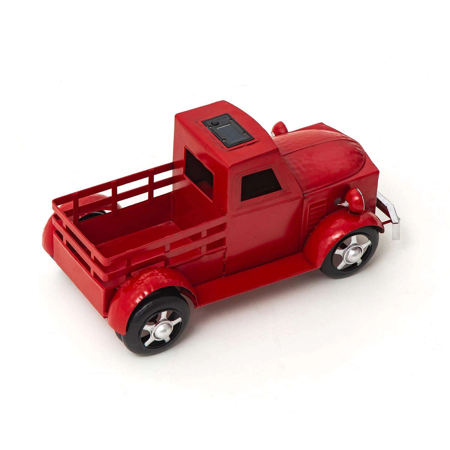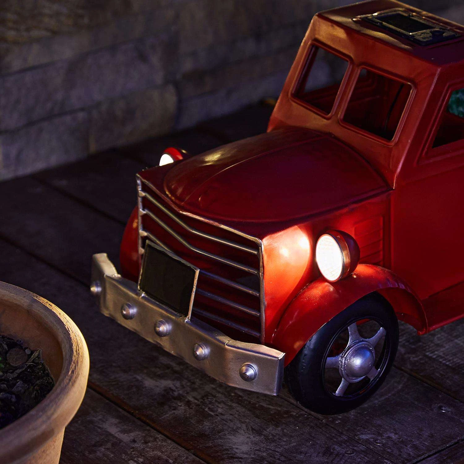 Add a touch of vintage charm with this timeless red truck planter stand. It is made of high-quality iron and featured a solar panel that storages energy to light up the headlights at night automatically. Just decorate the back of the truck with your lovely planters or blooms. The vivid natural beauties blooming under the warm white glow create an elegant and intriguing landscape that is sure to convert your garden, patio or any outdoor living space to be a gentle, delightful and relaxing environment. Solar powered, automatically charging in the sunlight Automatically turn on at dusk and turn off at dawn Timeless truck style brings your life a touch of vintage charm Decorate the back of the truck with your lovely planters or blooms to add holiday cheers Solar powered with warm white LEDs that are sure to create a vivid and charming landscape at night Built-in (1) long lasting 1.2V AA 300MAH Ni-MH rechargeable battery When fully charged, the battery can run for 6-8 hours
